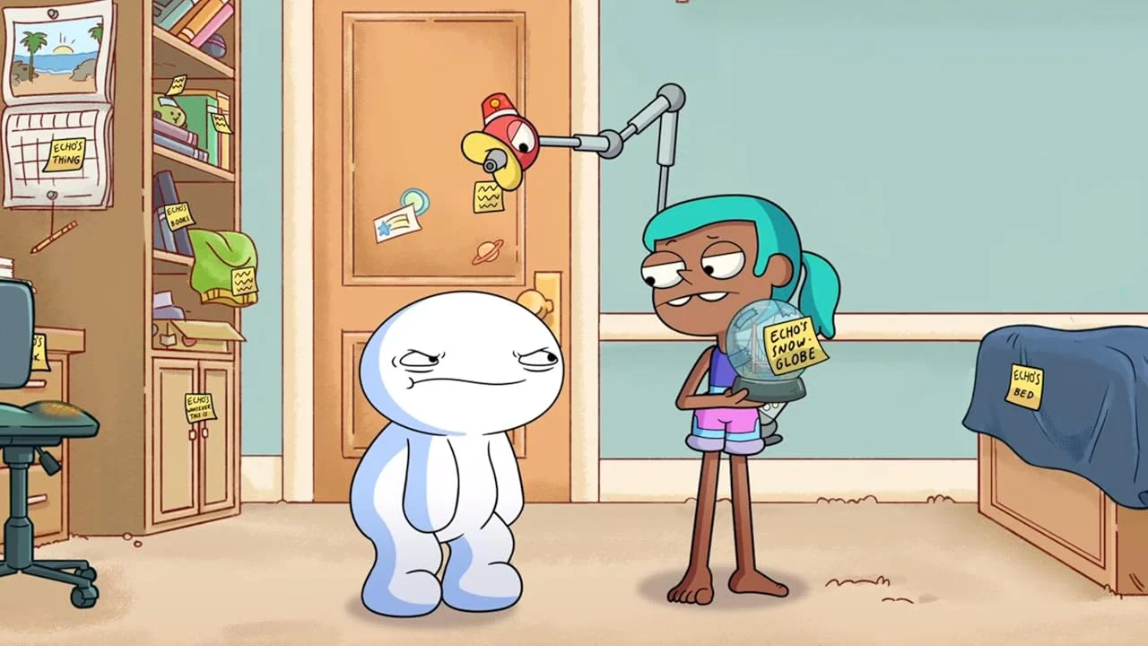 О мультфильме:Джеймс – это уникальное и ни на кого не похожее существо, которое ко всему прочему похоже на человека-маршмэллоу, что выглядит весьма забавно. Он постоянно подвергает сомнению абсолютно все, что только может услышать и пытается исправить. Джеймс действует не один, ведь у него есть двое приятелей – антропоморфный крокодил обладающей большой силой и девочка из будущего.